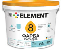 ELEMENT 8 water-dispersion matte facade paint, with good diffusion ability, resistant to atmospheric effects. It differs from household paints in the increased resistance to temperature changes and atmospheric phenomena. Is characterised by good adhesion, moisture resistance, is resistant to dirt and sunlight. Creates a matte waterproof coating on the facade surface. Suitable for application to various materials: brick, concrete, stone, plaster. It has excellent aesthetic properties.