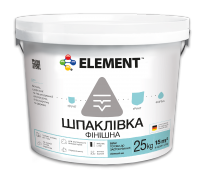 Універсальна ремонтна шпаклівка для внутрішніх робіт. Завдяки акриловим сополімерам та комплексу мінеральних наповнювачів, матеріал пластичний, добре наноситься, усуває дрібні вибоїни і дефекти, гравійні гнізда і тріщини. Також може використовуватися для розгладження поверхонь бетону, простого бетону, також шорсткою або пошкодженої штукатурки. Поверхні, вирівняні шпаклівкою TM ELEMENT і добре висохлі, можуть покриватися водними матеріалами TM ELEMENT. Фінішна шпаклівка ELEMENT також може використовуватися в якості матеріалу для декоративного оснащення поверхні.