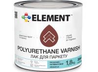 ELEMENT Лак для паркету поліуретановий. Призначений для лакування паркетних підлог та інших дерев'яних поверхонь, що піддаються сильним навантаженням (дерев'яні сходи, меблі та ін.). Створює прозоре декоративне покриття з підвищеною зносостійкістю, стійкий до стирання і подряпин. Для використання всередині приміщень.